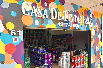 Com foco na comercialização de tintas imobiliárias e materiais de pintura e há mais de 20 anos revendendo as marcas mais conceituadas no mercado brasileiro como Eucatex, Coral, Lukscolor e Atlas, a Tintas Lele vem sendo referência pela inovação e diversidade de produtos, contando com um atendimento único, exclusivo e personalizado visando sempre a satisfação de seus clientes.